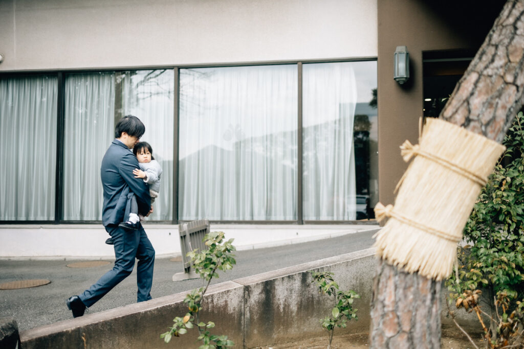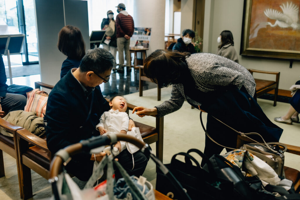 ご祈祷場所の記念館へ|祖父母と赤ちゃんの初対面